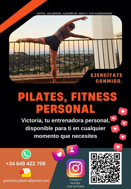 Bridget Mitchell2025-06-19Trustindex verifica que la fuente original de la reseña sea Google. Victoria has been fantastic in trying to give me confidence with mobility exercises. In the hot weather we are now doing Pilates in our pool. Thoroughly recommend her for her skills and patience. Maureen alcorn2025-06-18Trustindex verifica que la fuente original de la reseña sea Google. Victoria is like a tsunami of energy and good advice. She works by developing a strong working relationship with her clients and provides lots of additional material for you to use such as exercise routines using your favourite music. Victoria quickly establishes your needs during the initial session then tailors personalized exercise sessions for you which are challenging but never beyond you ability. She is excellent at encouraging you to do more repetitions of exercises as they become more tiring, but always backs this up with clear explanations of why and how they are helpful. That said, Victoria is fully aware of your body's limits and exercising through pain is never on her agenda. She will therefore ask from the outset whether you are experiencing any pain or discomfort and will adjust the exercises accordingly. I have no hesitation in recommending Victoria to you for Pilates sessions. Julie Dent2025-06-16Trustindex verifica que la fuente original de la reseña sea Google. Pilates classes with Victoria blend focused workouts with a touch of fun. Every class is a little different, not focusing on the same part of the body every time. Victoria’s enthusiasm and coaching make the time spent together all the more enjoyable! Adriana Haro Arenas2025-06-15Trustindex verifica que la fuente original de la reseña sea Google. Muy profesional y con una sonrisa que hace muy agradables toda las clases Maria Victoria Perez Rodriguez2025-06-15Trustindex verifica que la fuente original de la reseña sea Google. Es una profe estupenda y como persona maravillosa 😘😘💃 Gracia López Fernández2025-06-15Trustindex verifica que la fuente original de la reseña sea Google. Es la mejor profesora del mundo Paula van Oudheusden2025-06-15Trustindex verifica que la fuente original de la reseña sea Google. Victoria is an amazing teacher! I have several problems with my back, my hips and even my injured knee was no problem for her :) Ana mari2025-06-15Trustindex verifica que la fuente original de la reseña sea Google. No dudes en participar en las clases de Victoria. Es una profesional como la copa de un pino. Yo agradezco todos los días poder participar en sus clases. Mil gracias Victoria 💪😘. Maria Dolores Pérez Rodriguez2025-06-15Trustindex verifica que la fuente original de la reseña sea Google. La mejor instructora de la zona